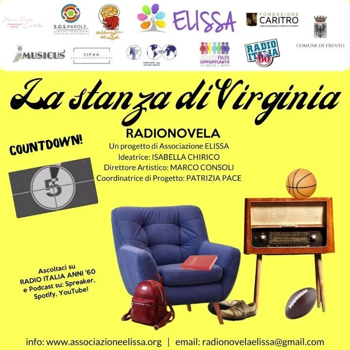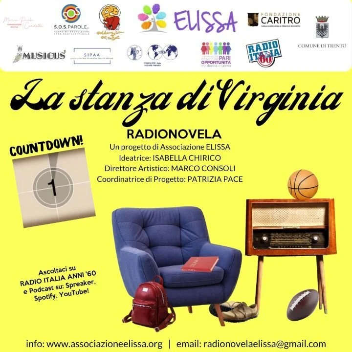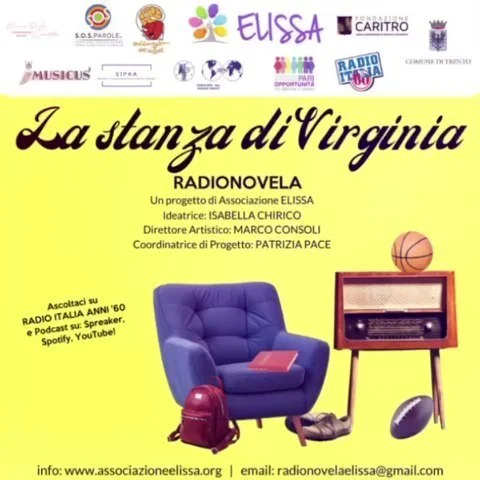 “…Nell’associazione Elissa l’ideazione del progetto RADIONOVELA: LA STANZA DI VIRGINA nasce dalla consapevolezza di quanto sia necessario sviluppare il senso di cittadinanza e la co-costruzione di relazioni di reciprocità tra le persone, di dedicare le attenzioni alla vulnerabilità, ai fattori di invisibilità sia con il fine di prevenire comportamenti prevaricatori (quali i fenomeni di bullismo, di razzismo, di esclusione dei “diversi”, della violenza) sia per promuovere il potere dell’immaginazione, nel quale il/la radioascoltatrice potrà immedesimarsi attraverso dialoghi, drammatizzazioni, informazioni, musica e consigli artistici letterari. Potrà addirittura immaginare un mondo migliore...”